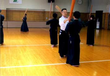 日高監督による鍛錬棒を用いた構え指導